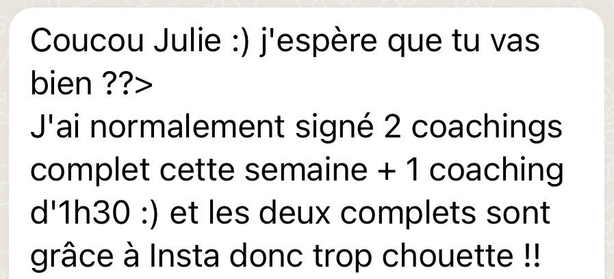 C'est pour toi l'occasion de toujours avoir quelqu'un à disposition pour t'aider à avancer, développer ton compte Instagram mais surtout ton business et rester motivée ! Je deviens un peu ta "bonne copine business" que tu peux solliciter dès que tu en ressens le besoin.